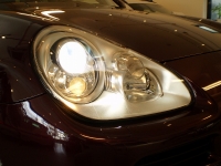 ハロゲンヘッドライトの約2倍の光量を誇る“キセノンヘッドライト”内にフラップを内蔵。ハイビーム/パッシング時も“キセノン光”で照射するというものです。
