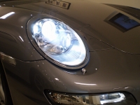ハロゲンヘッドランプの約2倍の光量を誇るキセノンヘッドランプ内にフラップを装着し、ハイビーム時にも青白いキセノン光で照射するというもの。ヘッドライトウォッシャも同時装着されます。夜間及び雨天時の安全性向上に貢献しています。