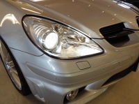 ロービームとハイビームを1つのキセノンライトで切り替え、強力な白色光でより広い範囲を照射するバイキセノンヘッドライト。その精悍なデザインがクリアレンズを通してSLKクラスならではの個性を放ちます。