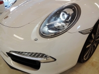 911カレラSにはハロゲンヘッドランプの約2倍の光量を誇るバイキセノンヘッドラン(ダイナミックレベライザー/ヘッドライトクリーニングシステム搭載)が標準装着されています。ハイビーム/ロービームのいずれにおいても、前方を均一な照度で一層明るく照らすため、ドライバーの疲労も低減します。