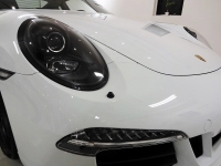 911カレラGTSにはハロゲンヘッドランプの約2倍の光量を誇るブラック仕上げのバイキセノンヘッドラン(ダイナミックレベライザー/ヘッドライトクリーニングシステム搭載)と共にPDLS(ポルシェ・ダイナミック・ライトシステム)が標準装着されています。ハイビーム/ロービームのいずれにおいても、前方を均一な照度で一層明るく照らすため、ドライバーの疲労も低減し、PDLSに組み込まれるダイナミックコーナリングライトは、操舵角や走行速度に基づいてヘッドライトの照射角をコーナーの内側方向に調整し、より優れた視認性をもたらします。