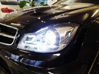 明るさを高めた「バイキセノンヘッドライト」や「インテリジェントライトシステム(カントリーモード/フォグランプ強化機能/ハイウェイモード/アクティブライトシステム/コーナリングライト)」などに加え、「ポジショニングライト」やウインカーにLEDを使用して、C63 Coupe Black Seriesのフロントマスクを精悍に印象付け、夜間走行の安全性を高めます。
