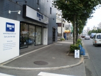 駐車場看板が見えましたら、ショールーム手前の路地を左折してください。